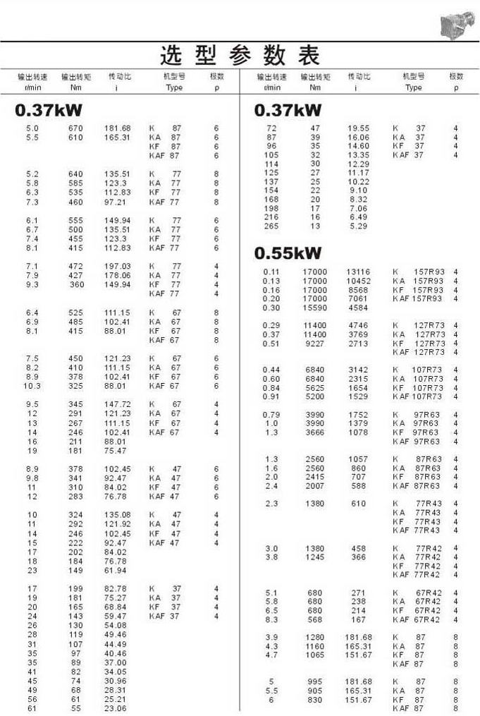 選型參數表0.37kW(續(xù)),0.55kW